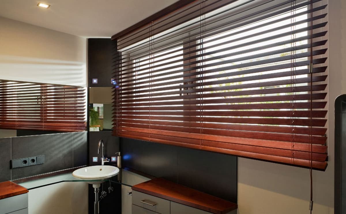- Минимализм. Деревянные жалюзи графит служат элегантным и функциональным акцентом, который не перегружает пространство. Они хорошо сочетаются с белыми или светлыми стенами.